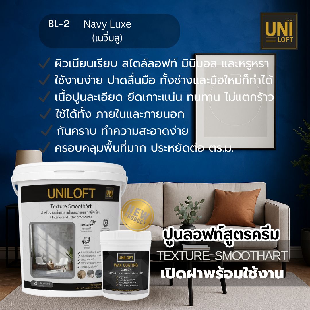 UNILOFT SmoothArt ปูนลอฟ​ท์​สูตรครีม | ปูนฉาบผนังตกแต่งสำหรับ​ภายใน​และ​ภายนอก​ เปิดฝาพร้อมใช้งานไม่ต้องผสมเอง